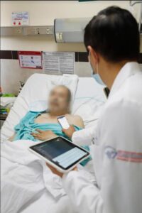 El señor Mario es monitoreado periódicamente mediante una tableta electrónica para conocer el estado de la batería del electrodo y del estimulador, además de realizarle pruebas físicas para valorar el progreso del procedimiento.