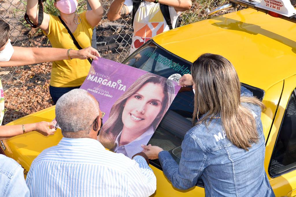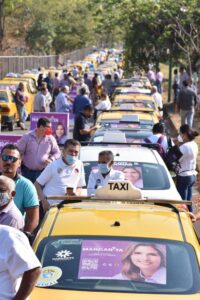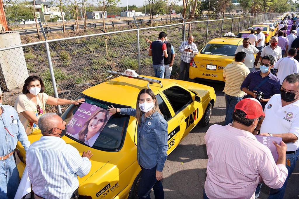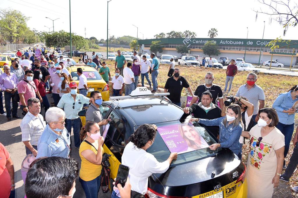 Lo anterior en evento en donde más de cien taxistas adheridos a la CTM se unieron esta mañana a la campaña de Margarita Moreno, candidata de la coalición “Va por Colima” a la Presidencia Municipal de la capital del Estado, tras un encuentro en el que se realizó un diálogo con los conductores del transporte público, para después realizar la pega de calcas en las unidades que, desde ahora, circularán en las calles de la ciudad.
