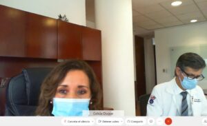 Durante la reunión que se realizó de forma virtual estuvieron, por parte del IMSS: doctora Célida Duque Molina, directora de Prestaciones Médicas; Humberto Pedrero Moreno, director de Administración; doctor Efraín Arizmendi Uribe, coordinador de Unidades Médicas de Alta Especialidad; Jaqueline Moreno Gómez, coordinadora Normativa de la Dirección General; maestra Marcela Velázquez Bolio, coordinadora de Vinculación con Organizaciones Públicas, Privadas y Sociales.