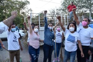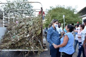 La actividad de recolección de ramas y basura se convirtió en un punto de encuentro entre los vecinos, que al ver que la candidata recogía con sus manos la basura para subirla a una camioneta, para su traslado al basurero, decidieron sumarse al trabajo y pusieron manos a la obra.