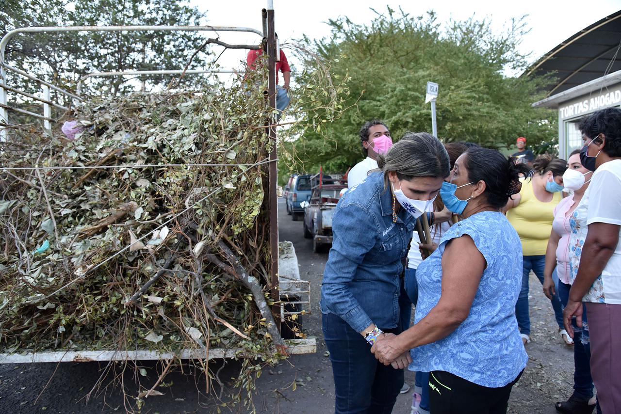 La actividad de recolección de ramas y basura se convirtió en un punto de encuentro entre los vecinos, que al ver que la candidata recogía con sus manos la basura para subirla a una camioneta, para su traslado al basurero, decidieron sumarse al trabajo y pusieron manos a la obra.