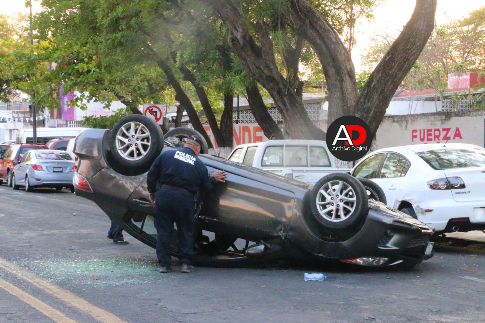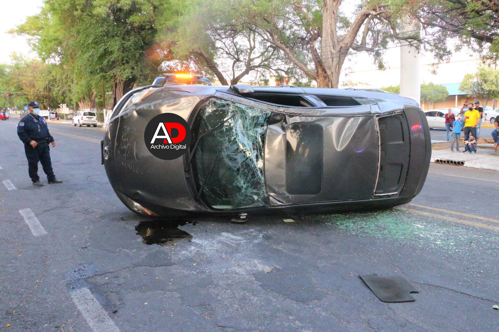 La tarde de este martes 27 de abril de 2021 se registró la volcadura de un Mazda 3 color gris, esto en la Calzada Galván en la zona oriente de la capital colimense, a la altura del centro comercial Walmart.