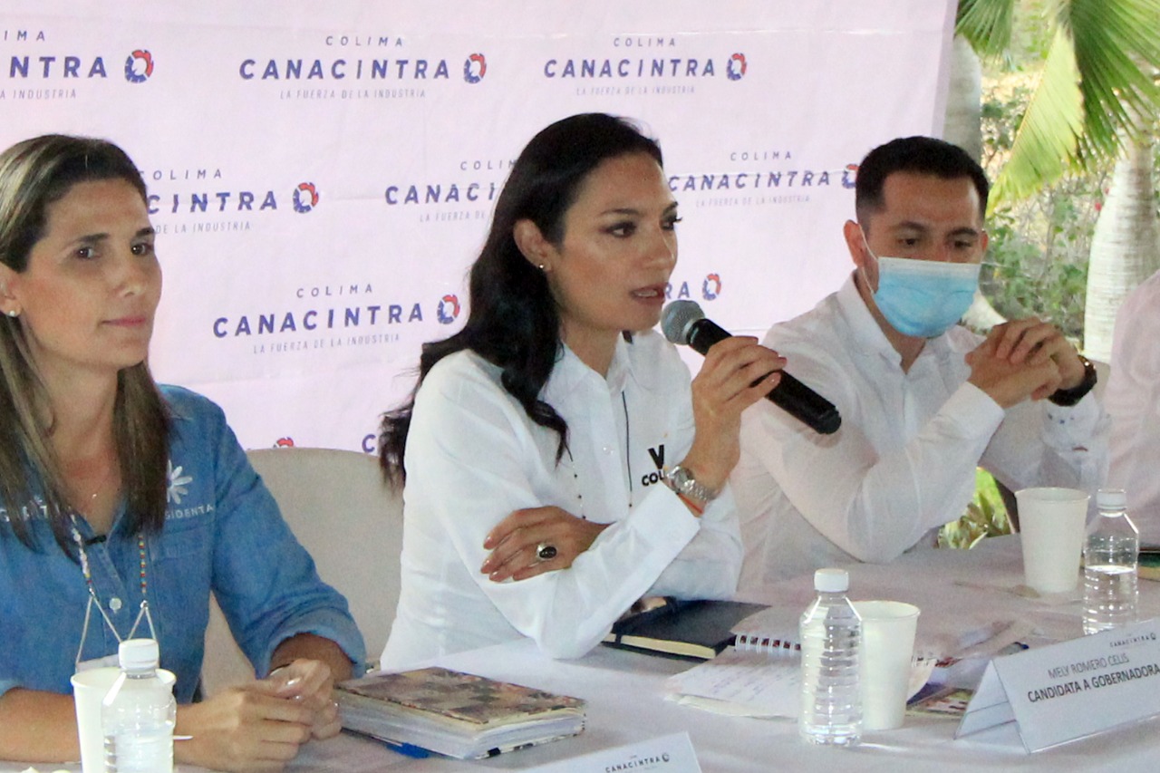 Colima, Col. 28 de abril de 2021.- Durante un encuentro con agremiados a la Cámara Nacional de la Industria de la Transformación (Canacintra), la candidata a gobernadora por la Coalición “Va por Colima”, Mely Romero Celis, pidió hacer una alianza con los ciudadanos para impulsar una restructuración administrativa que mejore los servicios y éstos cumplan con la expectativa de la población.