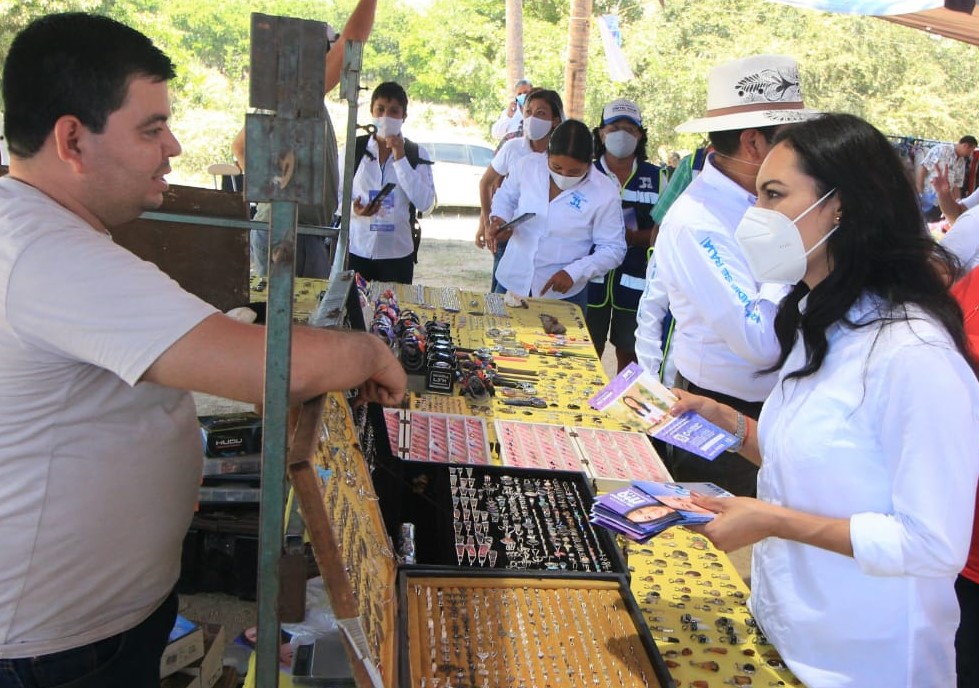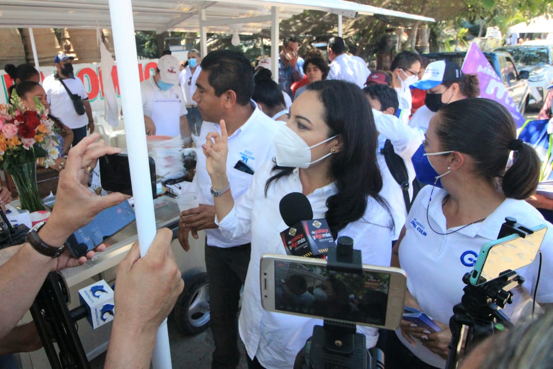 Previo a un recorrido por el tianguis de Santiago, en este Puerto, Mely Romero lamentó también los graves problemas de movilidad generados por las deficientes vialidades de acceso al Puerto.
