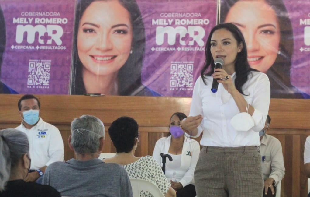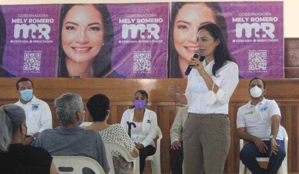 Tecomán, Col. 4 de mayo de 2021.- La abanderada de la Coalición “Va por Colima” al Gobierno del Estado, Mely Romero Celis, tras reunirse con pensionados y jubilados de Tecomán y realizar un recorrido por colonias de ese municipio, expresó que su gobierno no eliminará ni apoyos ni pensiones, como les ha amenazado Morena a adultos mayores si ella gana la gubernatura.