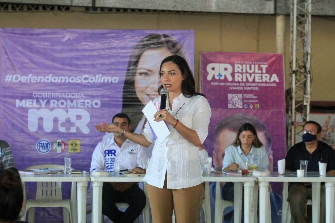Tras esa reunión, Mely Romero acompañó a la candidata a la presidencia municipal de Colima, Margarita Moreno González, durante un encuentro con vecinos de la Colonia Popular. Ahí se comprometieron a trabajar en equipo para mejorar la seguridad en los barrios y colonias de la capital.