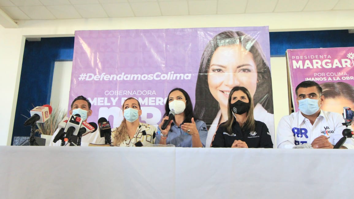 Acompañada por Margarita Moreno González y Ruilt Rivera, candidatos a presidenta municipal de Colima y a diputado federal, respectivamente, Romero Celis sostuvo que sólo hay dos opciones para esta elección al Gobierno del Estado, cuya competencia está entre dos mujeres: una que es un cambio para retroceder, perdiendo programas, presupuestos y secretarías de gobierno, y la otra opción que representa la Coalición “Va por Colima”.