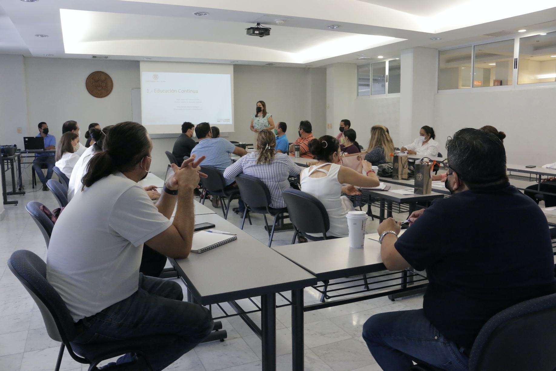 La reunión estuvo presidida por Ana María Gallardo Vázquez, delegada de la UdeC en Manzanillo y contó con la participación de Jesús Omar Brizuela Padilla, director general de Educación Continua y Myriam Jiménez Rodríguez, responsable de planteles y dependencias, así como de los jefes de mantenimiento y de responsables de área de dicha delegación.