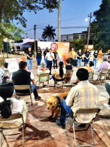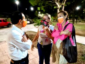 Acompañado de su esposa Leticia Contreras Cortés e integrantes de la planilla, Rangel Lozano se reunió con vecinas y vecinos de Jardines Vista Hermosa, con quienes dialogó y generó compromisos de mejorar el entorno de la colonia.