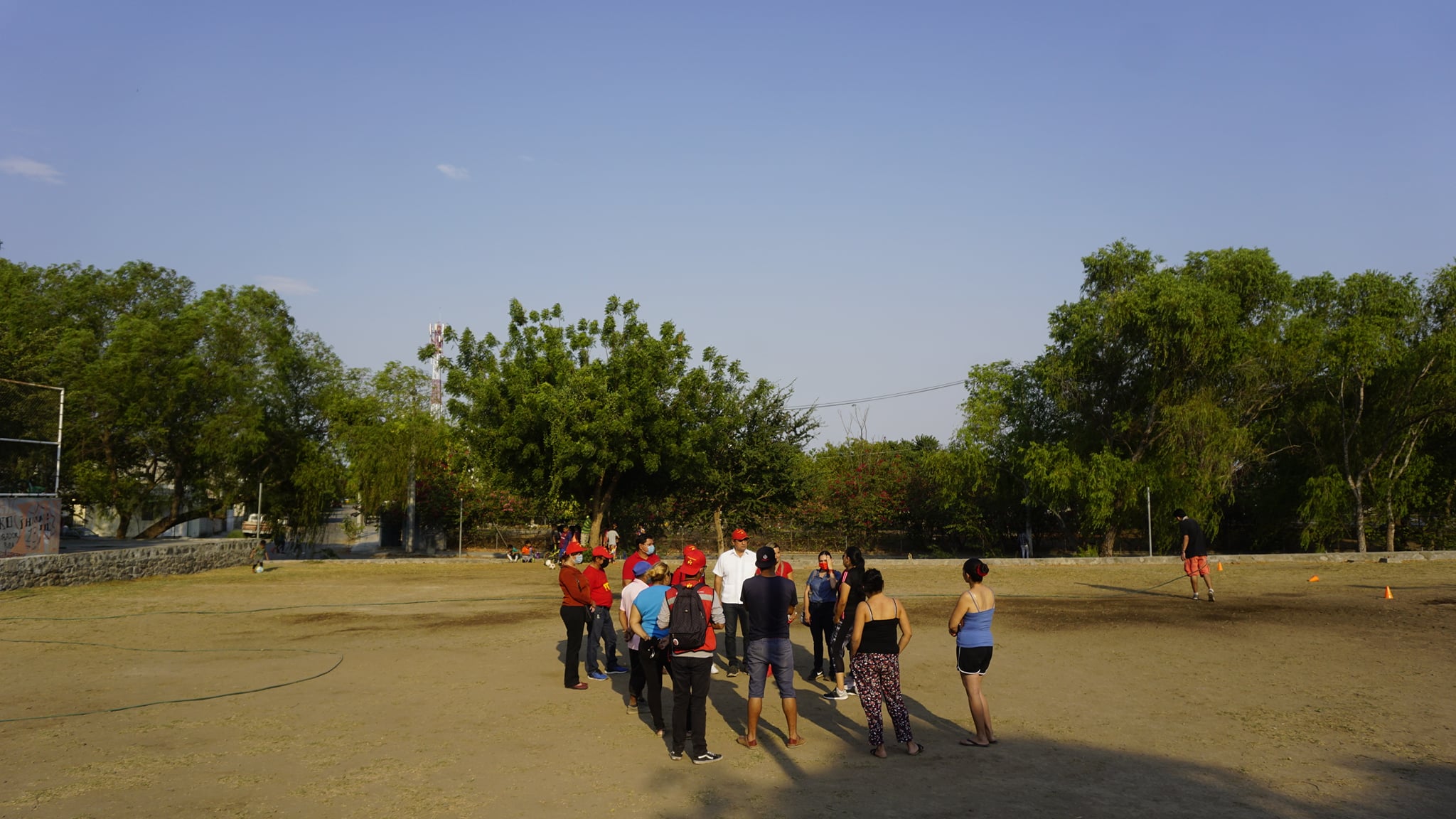 “Vamos a arreglar esta cancha, vemos que se robaron la planta del sistema de riego, es una cancha llanera y debería de estar en buenas condiciones para que los niños y jóvenes desarrollen sus habilidades deportivas, así mismo cubriremos con becas deportivas a los talentos y entrenadores de los grupos y equipos deportivos de las colonias y barrios”.