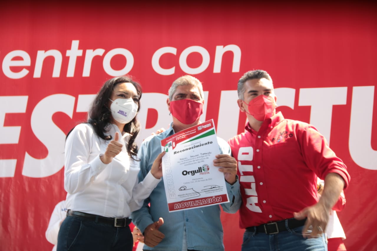 Colima, Col.Durante un encuentro y entrega de reconocimientos a las estructuras priistas del primer distrito electoral federal, el dirigente nacional del PRI, Alejandro Moreno Cárdenas, “Alito”, aseguró que la candidata a gobernadora Mely Romero Celis, es la única que puede vencer a Morena, por lo que pidió a las fuerzas políticas ajenas a la Coalición “Va por Colima”, sumarse a ella.