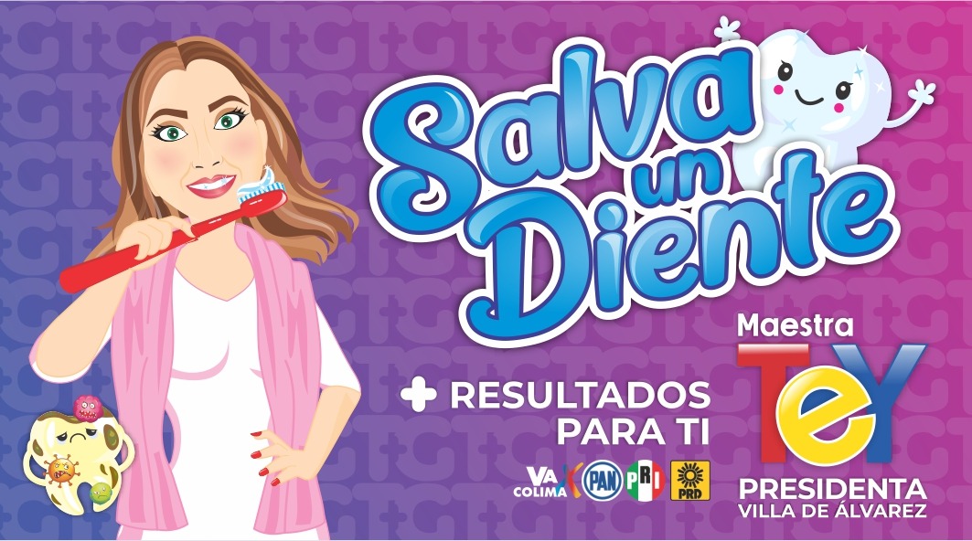 Villa de Álvarez, Col;Comprometida con la salud de niñas y niños del municipio, Tey Gutiérrez, candidata de la coalición Va por Colima, a la alcaldía de Villa de Álvarez presenta la campaña “Salva un Diente”, con la finalidad de dar a conocer el correcto uso del cepillo dental y una adecuada higiene.