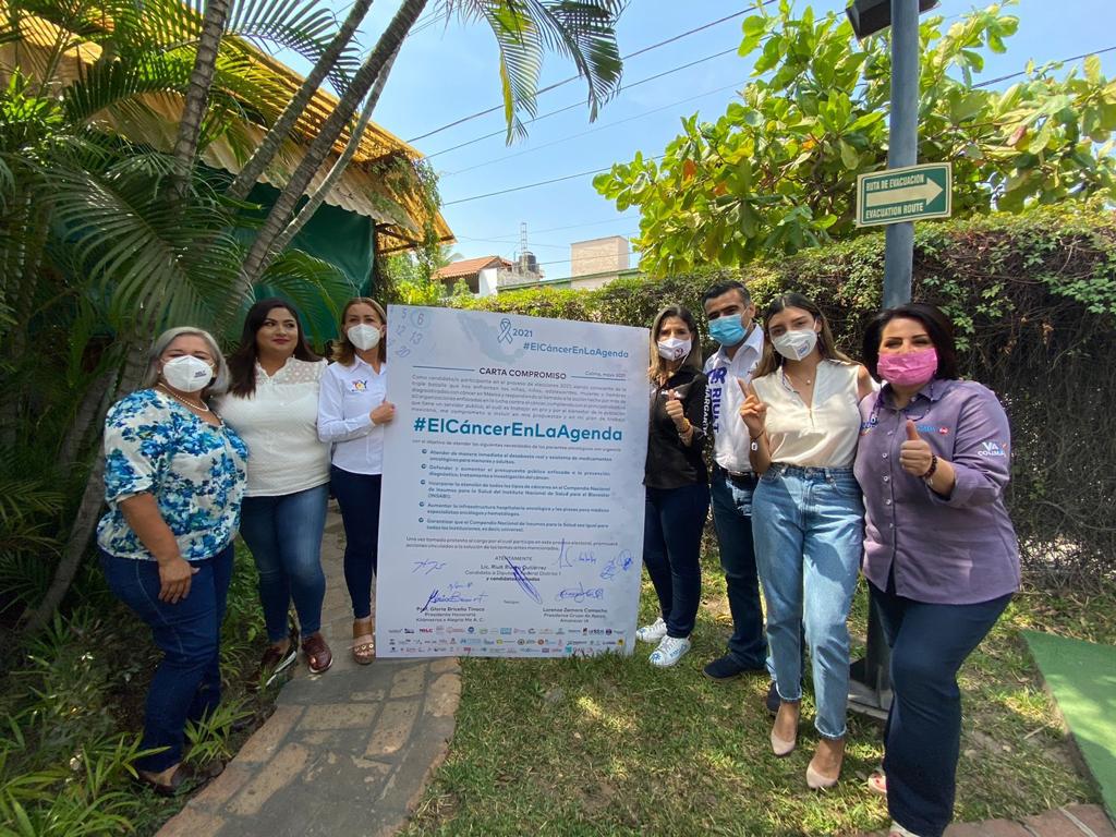 El abanderado de la Coalición “Va por Colima” para la Diputación Federal por el Distrito l, Riult Rivera Gutiérrez, acompañado de sus compañeras y compañeros candidatos, Margarita Moreno, Gabriela Mejia, Esther Gutierrez, Lizzie Moreno, Fernanda Salazar, Teresa Guerrero y Jesus Dueñas, atendiendo a el llamado por parte del Mtro. Kenji López Cuevas, Presidente de Cáncer Warrior México para la firma de compromisos para impulsar iniciativas que promuevan la lucha contra el Cáncer, tal como se presenta el programa “El cáncer en tu agenda”.