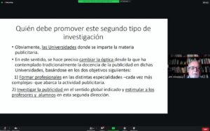 Este nuevo trabajo de investigación, dijo por último, deben hacerlo además las universidades públicas; “si no lo hacen ellas, nadie lo va a hacer, menos las privadas, que tienen otro tipo de intereses, porque cuanto más se conozcan los efectos individuales y sociales que tiene la publicidad, los profesionales estarán más provistos de los conocimientos necesarios para ofrecer una mejor publicidad que beneficie al individuo y la sociedad”.