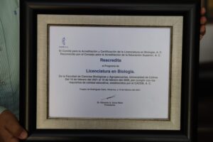Sobre la reacreditación, dijo que el CACEB, “después de analizar cada uno de los informes de los evaluadores, decidió otorgar a la Licenciatura en Biología la reacreditación, recomendando reflexionar sobre el desarrollo y consolidación de los cuerpos académicos y sus líneas de investigación de manera persistente y con productos de mayor alcance, ya que los cuerpos académicos son el reflejo de toda la institución”.