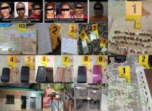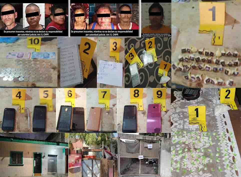 Luego del aseguramiento de la droga, inmuebles e indicios, la Policía de esta Institución puso a disposición de la autoridad competente a los imputados para dar continuidad a las averiguaciones y proceso jurisdiccional que se sigue. Cabe destacar que los operativos girados por el Juez de Control y encabezados por la FGE, fueron reforzados por elementos de la Guardia Nacional y agentes de la Policía Estatal con apoyo de binomios caninos.