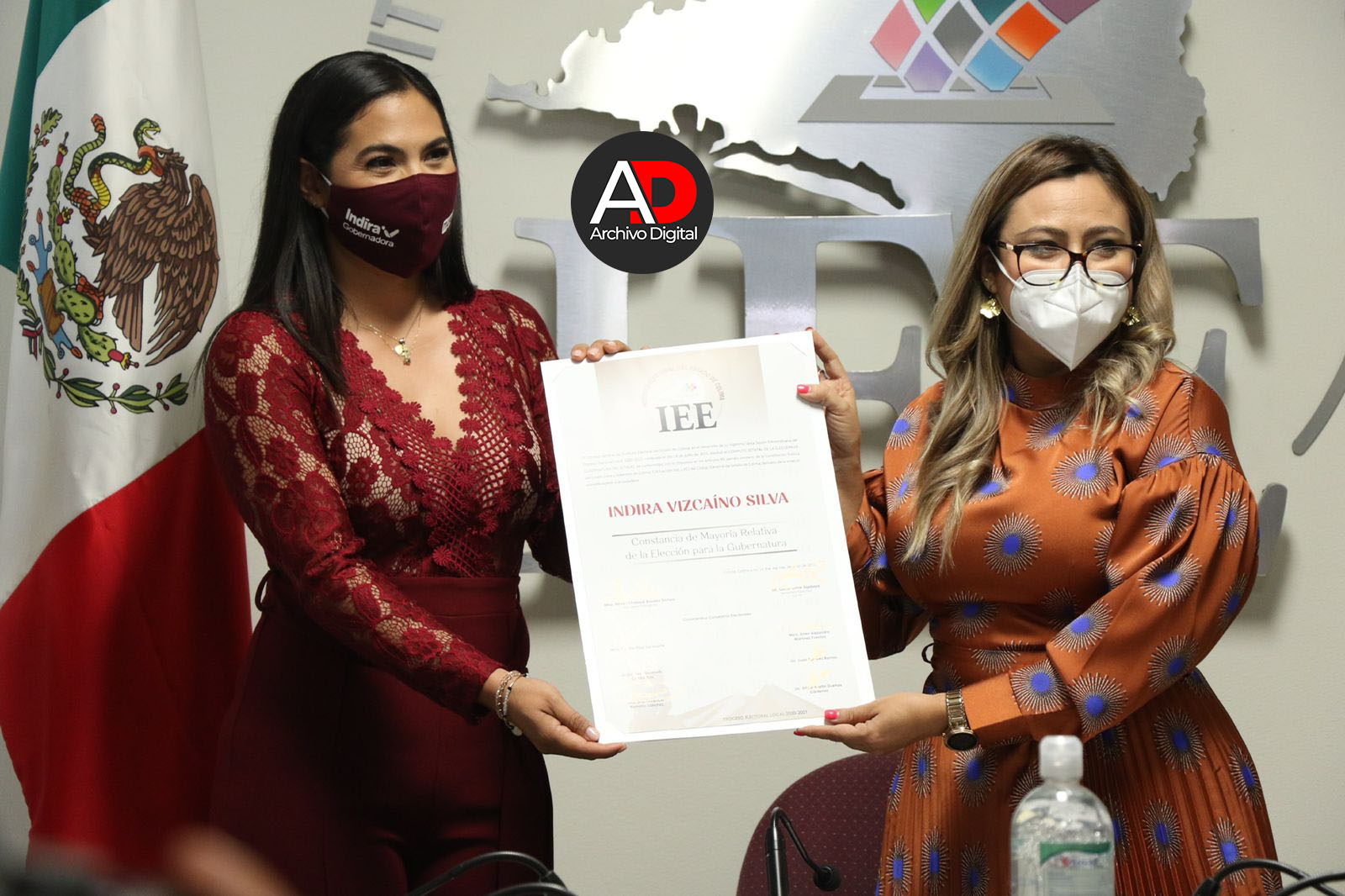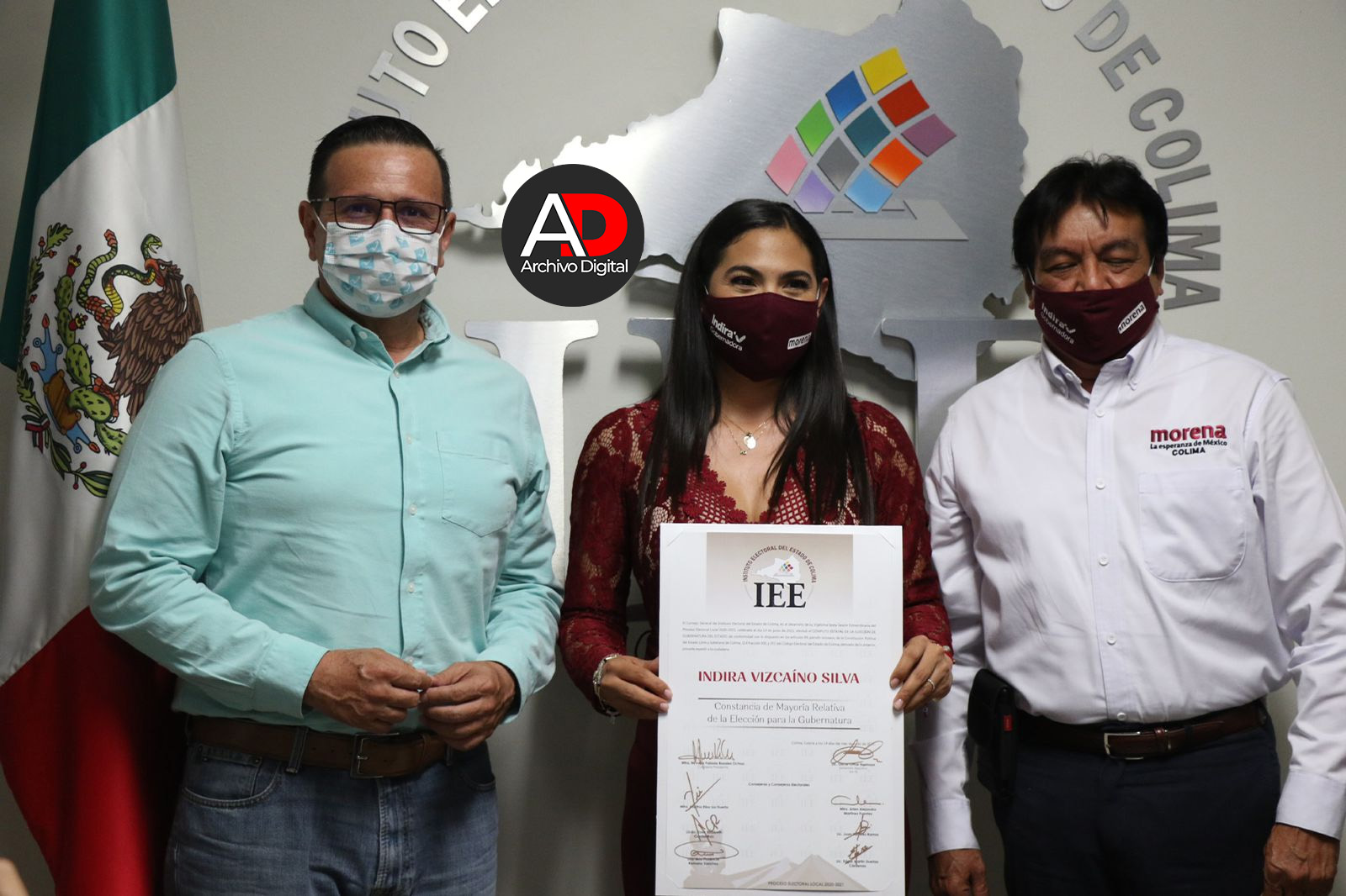 Luego de que el Consejo General del Instituto Electoral del estado de Colima llevara a cabo el cómputo estatal de la elección para la gubernatura, su presidenta Nirvana Rosales Ochoa, entregó la constancia de mayoría a Indira Vizcaíno Silva de la candidatura común Morena-Nueva Alianza como gobernadora electa.
