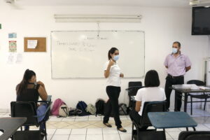 el uso correcto del cubrebocas, la aplicación de gel y la buena ventilación de los salones, en los que el cupo máximo fue de 20 personas para garantizar la sana distancia.