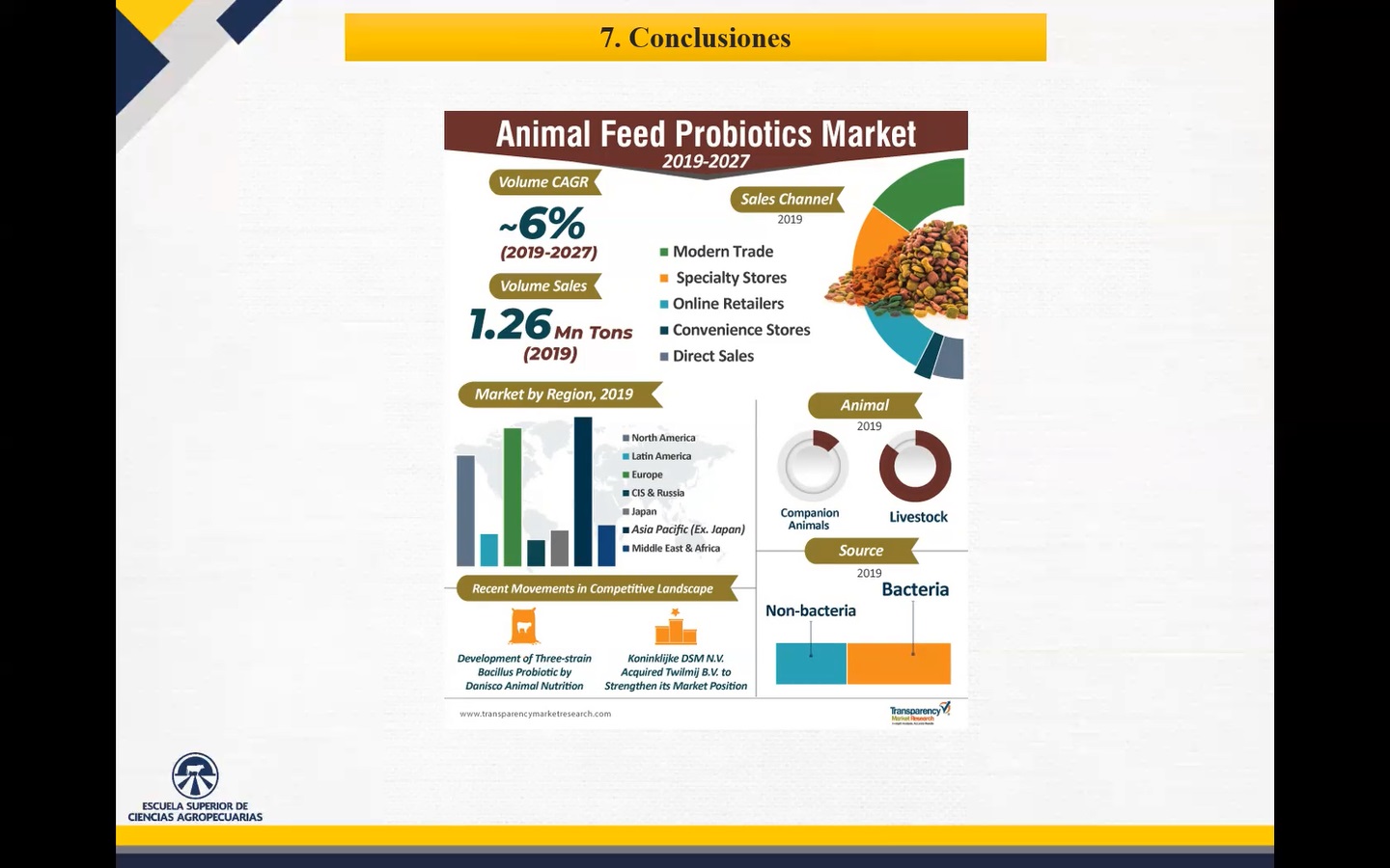 Precisó que los efectos de los probióticos “suelen ser más marcados cuando los animales están sometidos a algún tipo de estrés o se encuentran en condiciones higiénico-sanitarias deficientes, teniendo respuestas más claras las primeras semanas de vida de los animales, especialmente en el destete o en situaciones de grandes demandas nutritivas, explicó”.