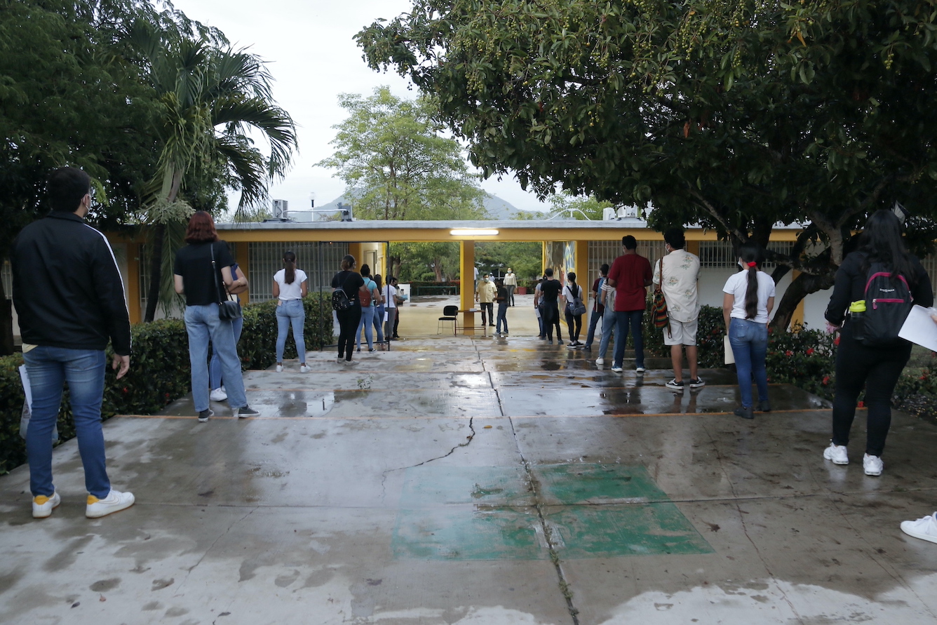 María Llamas, mamá de una de las aspirantes, opinó que la aplicación del examen se está realizando de manera correcta y que el protocolo de sanidad para el ingreso “lo están haciendo bien; todos tienen el cubrebocas, están separados y les ponen gel antibacterial”.