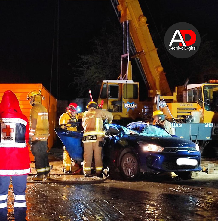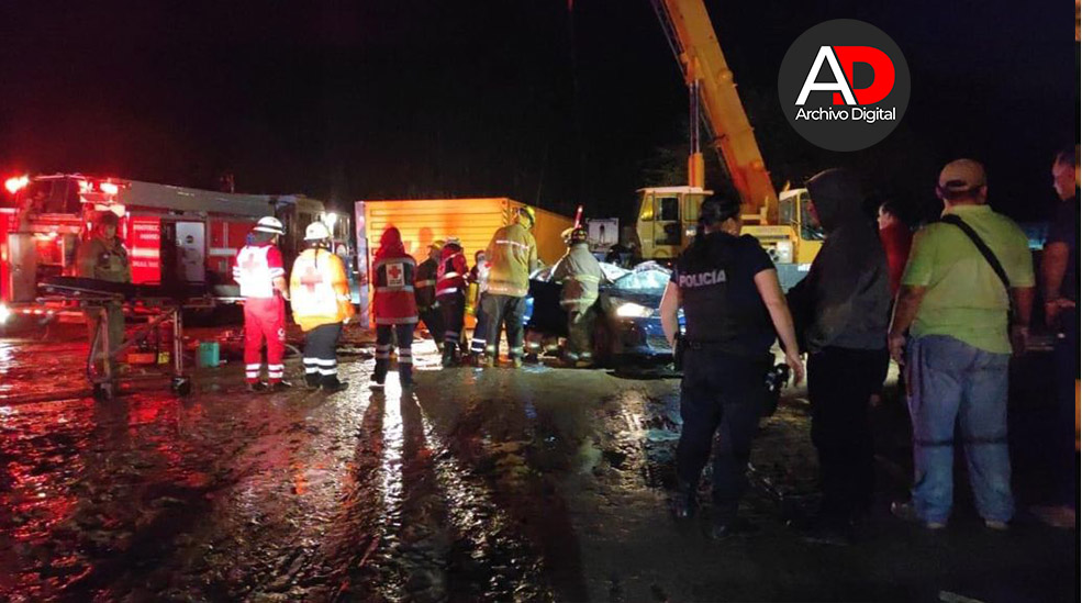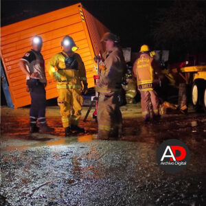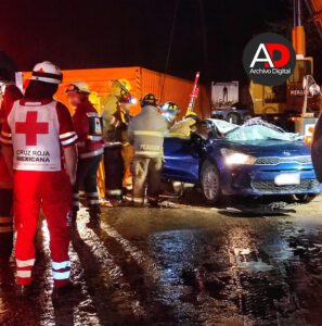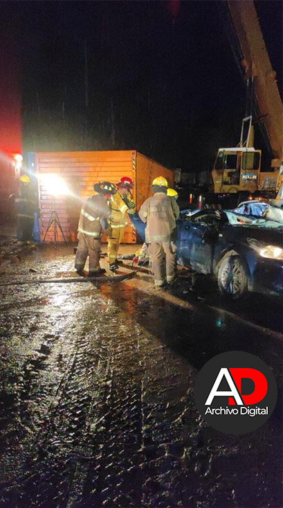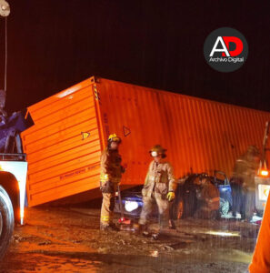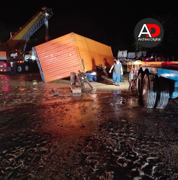De acuerdo al reporte, un contenedor cayó encima de un vehículo particular en donde transitaban dos personas, las cuales quedaron prensadas entre el contenedor y los fierros retorcidos del automotor.