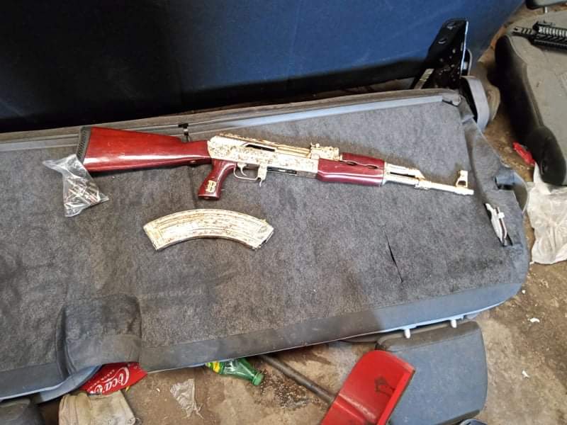 Además en el sitio fueron encontrados y decomisados otros cuatro vehículos, 124 cartuchos útiles, ocho cargadores, una pistola y cinco armas de fuego largas, una de ellas chapada en oro.