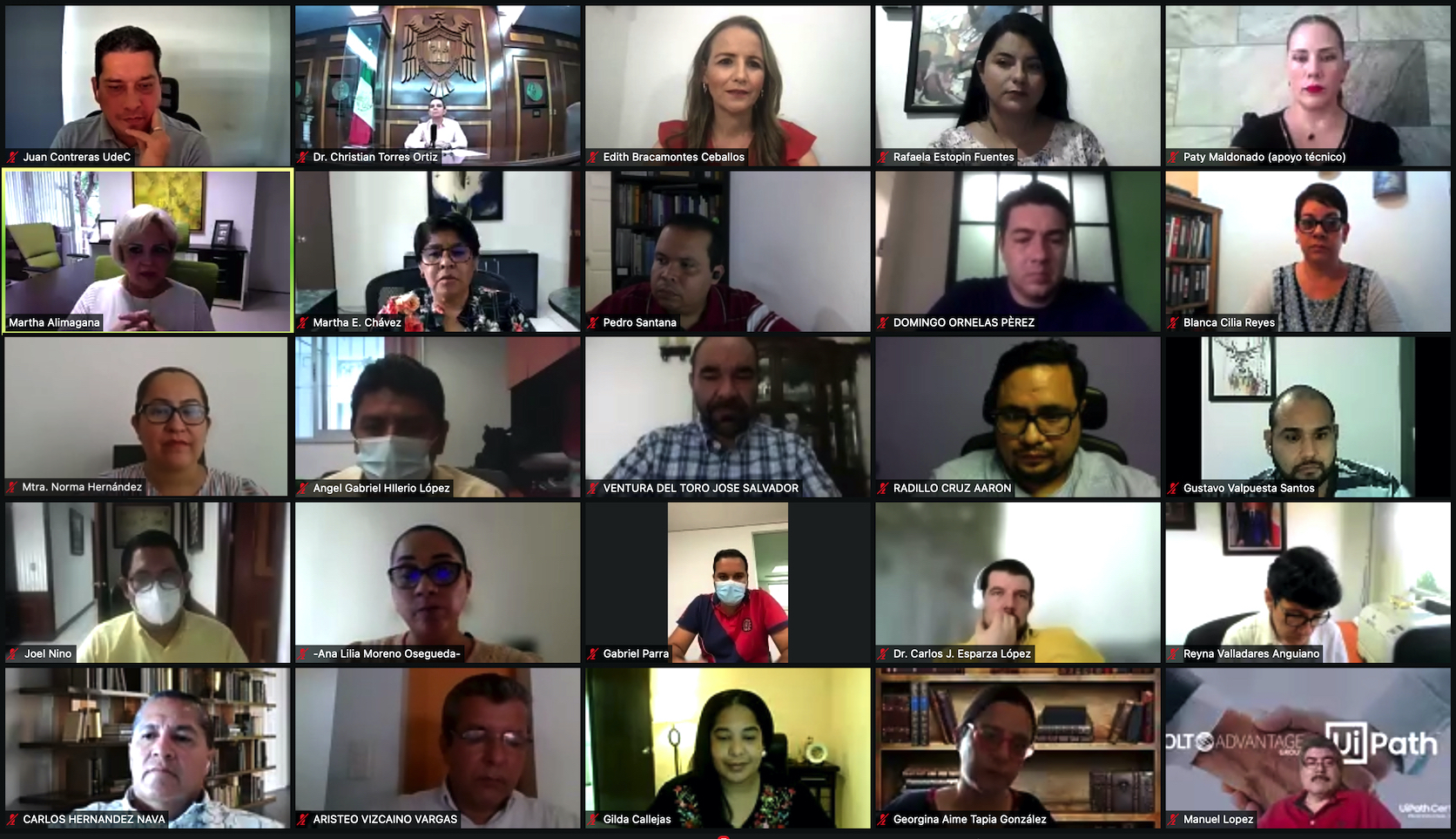 En este sentido, habló de la importancia que tiene la mediación tecnológica en el modelo educativo a distancia. Para lograr una adecuada transición institucional a dicha mediación tecnológica, agregó, es fundamental la capacitación de todos los docentes de la institución; “aquí quiero reconocer los esfuerzos extraordinarios que se han hecho, no sólo desde la Coordinación General de Docencia, sino también en las coordinaciones de Tecnologías de la Información, de Investigación Científica y todas las áreas de la institución en las que se han realizado esfuerzos importantes para capacitar a su personal ante los retos de esta pandemia”.