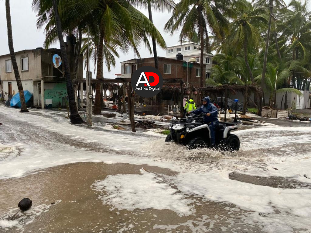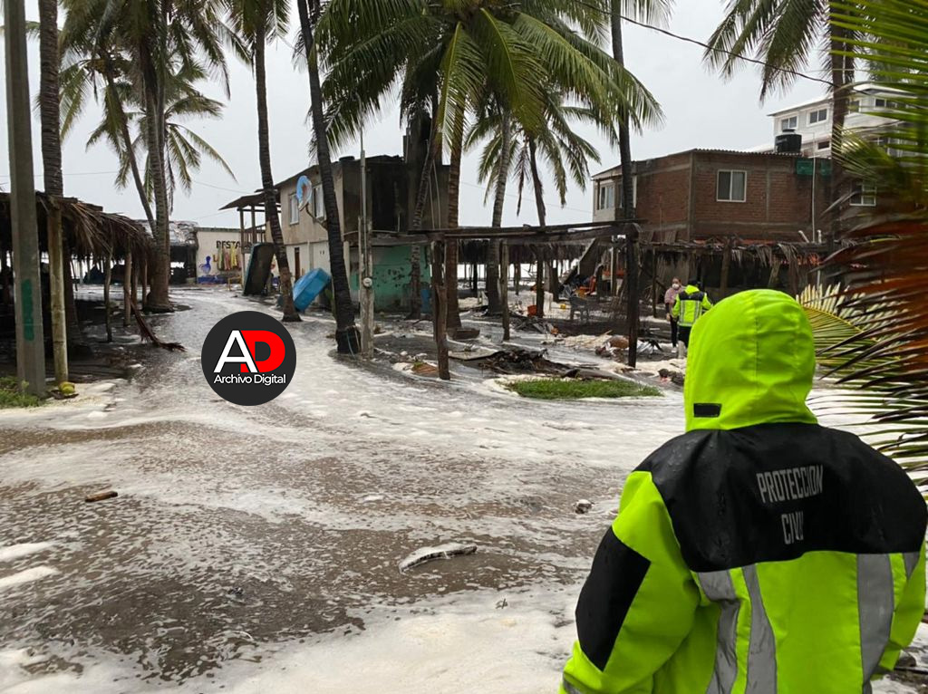 Encabezados por su director, Roberto Campuzano López, los elementos inician con el retiro de las personas que ahí se encuentran, debido a que las olas se encuentran ya invadiendo dichas ramadas.
