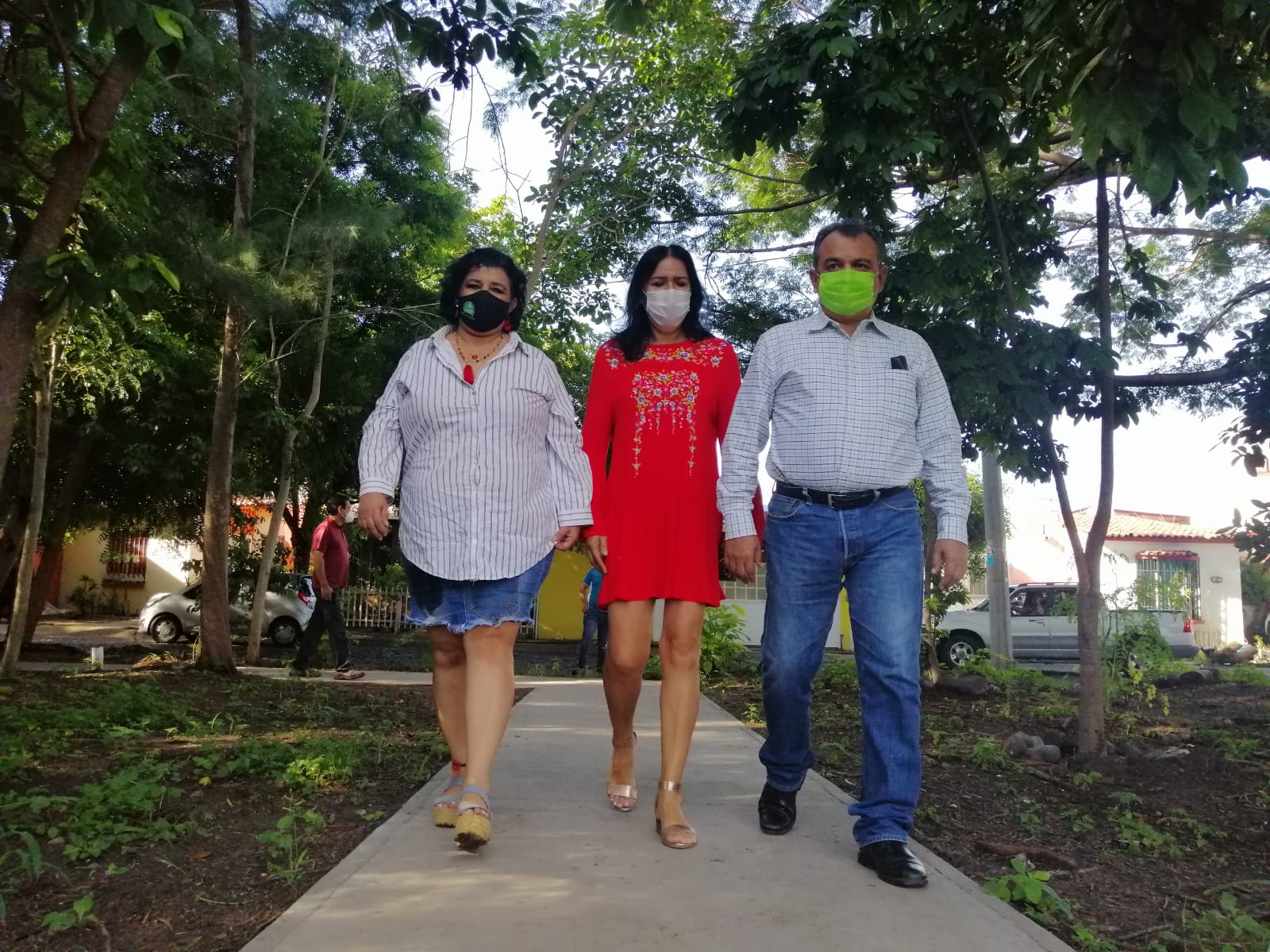 El Presidente Municipal Felipe Cruz entregó este lunes dos obras, de pavimentación de vialidad y banquetas de parque cultural, la primera en la colonia San Isidro y la otra en la colonia Centenario.