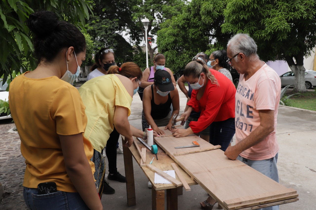 En la Casa de Usos Múltiples del jardín de la Colonia Indeco de Tapeixtles, las beneficiarias del taller aprendieron a usar las diversas herramientas de carpintería, el uso del martillo, del cepillo de madera, tipos de clavos, lijado de madera, aplicación del barniz y el logro de diversos acabados.