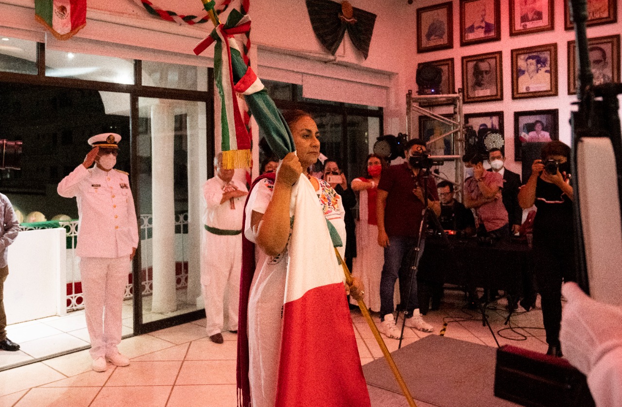 En el Marco del CCXI Aniversario del inicio de nuestra Independencia, la presidenta municipal de Manzanillo, Griselda Martínez, vitoreó a los héroes que nos dieron patria, acompañada por un número reducido de personas entre integrantes de su gabinete y autoridades militares, en una ceremonia cívica transmitida en vivo desde el Salón de Cabildo del Palacio Municipal.