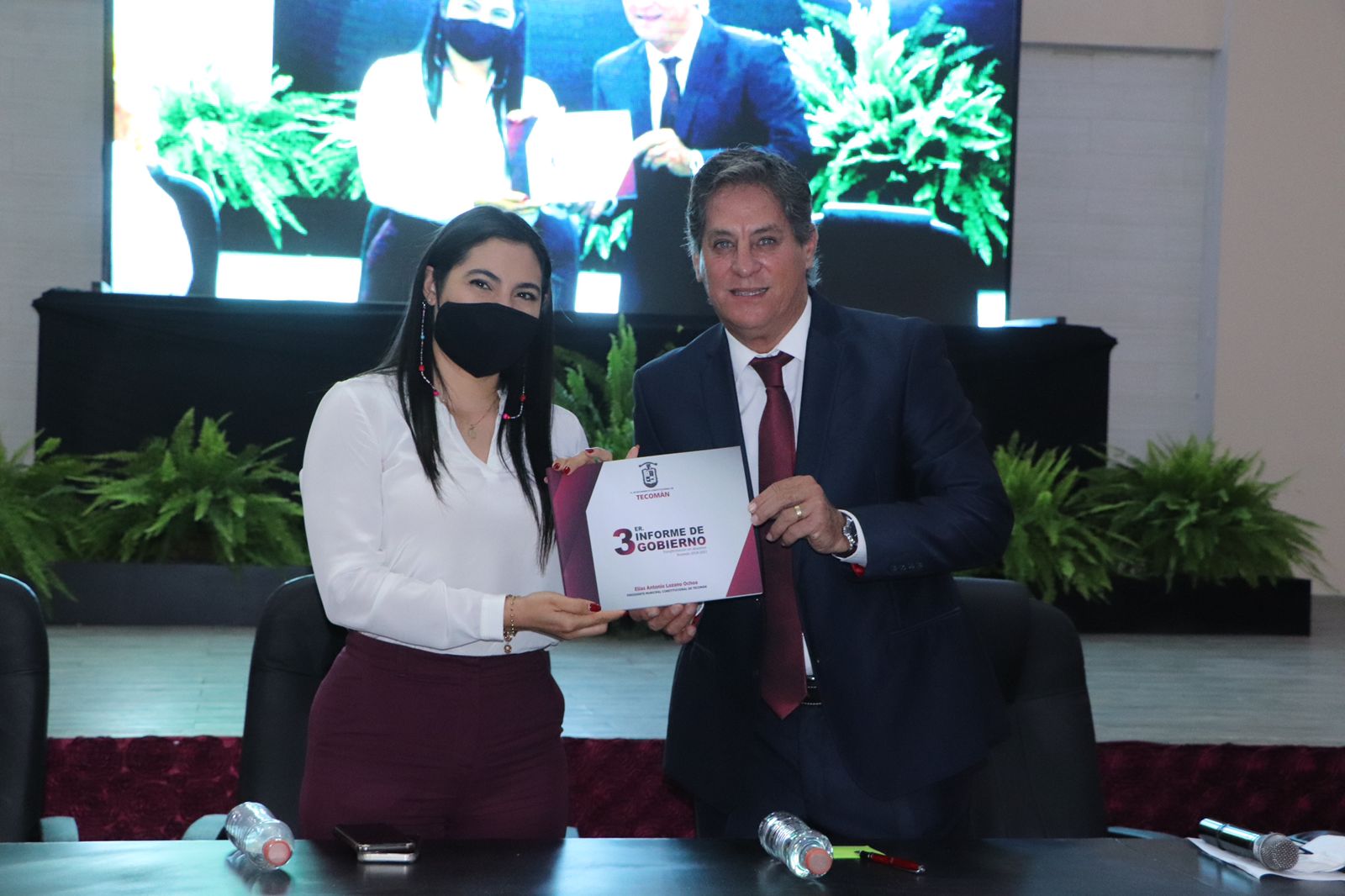 Después de concluir la Sesión Solemne del H. Cabildo Municipal de Tecomán en el que entregó de manera simbólica su tercer informe de labores, el presidente municipal Elías Antonio Lozano Ochoa detalló sus logros administrativos, de combate a la corrupción, que han permitido tener un municipio transformado, con más obra pública, generaciones de inversiones privadas, sin haber contraído deuda en estos tres años.