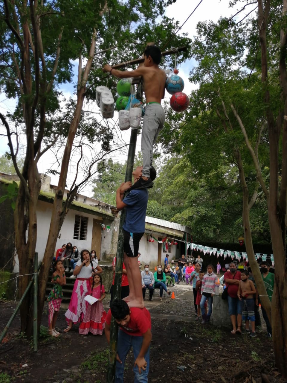 Esta dinámica fue propuesta y desarrollada por el señor Ramón Orozco, un vecino de la comunidad, asiduo a las actividades del programa Lazos desde el mes de mayo; “es un juego que antes se hacía con mucha alegría, sin malas intenciones, sólo para reírnos de quienes intentaban alcanzar los regalos”, comentó Ramón Orozco.