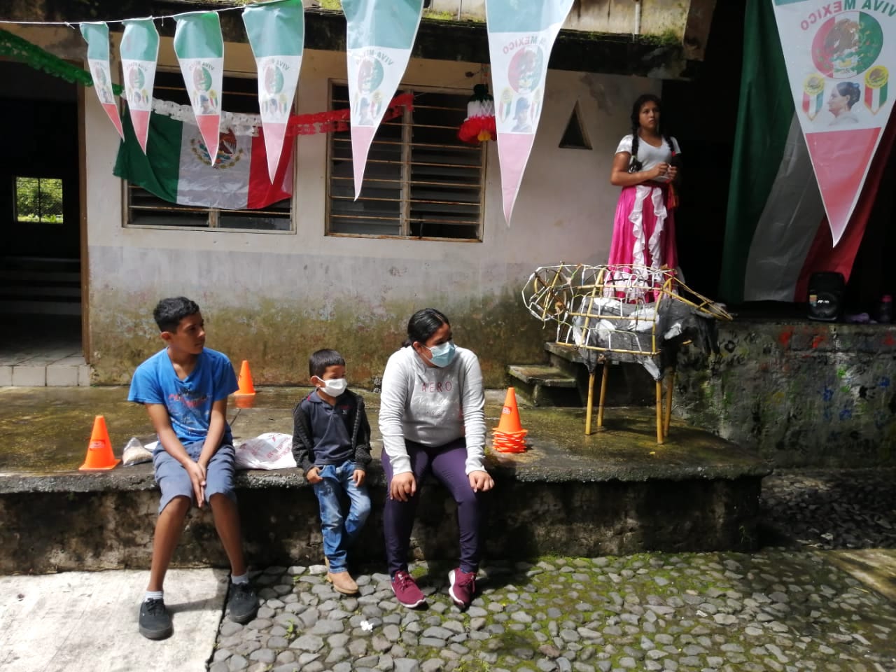 Luego de la explicación de los pasajes históricos de la Independencia de México, a cargo de Ramírez Velasco, los padres de familia prepararon el juego tradicional del palo encebado, una antigua actividad lúdica para divertir a grandes y pequeños.