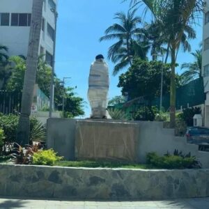 Con motivo del estreno de una serie que ahonda en la película en la que el comediante es un “latin lover”, la escultura fue develada por el gobierno de Guerrero por “su aportación a la difusión de Acapulco en el mundo”, algo con lo que no estuvieron de acuerdo los residentes.