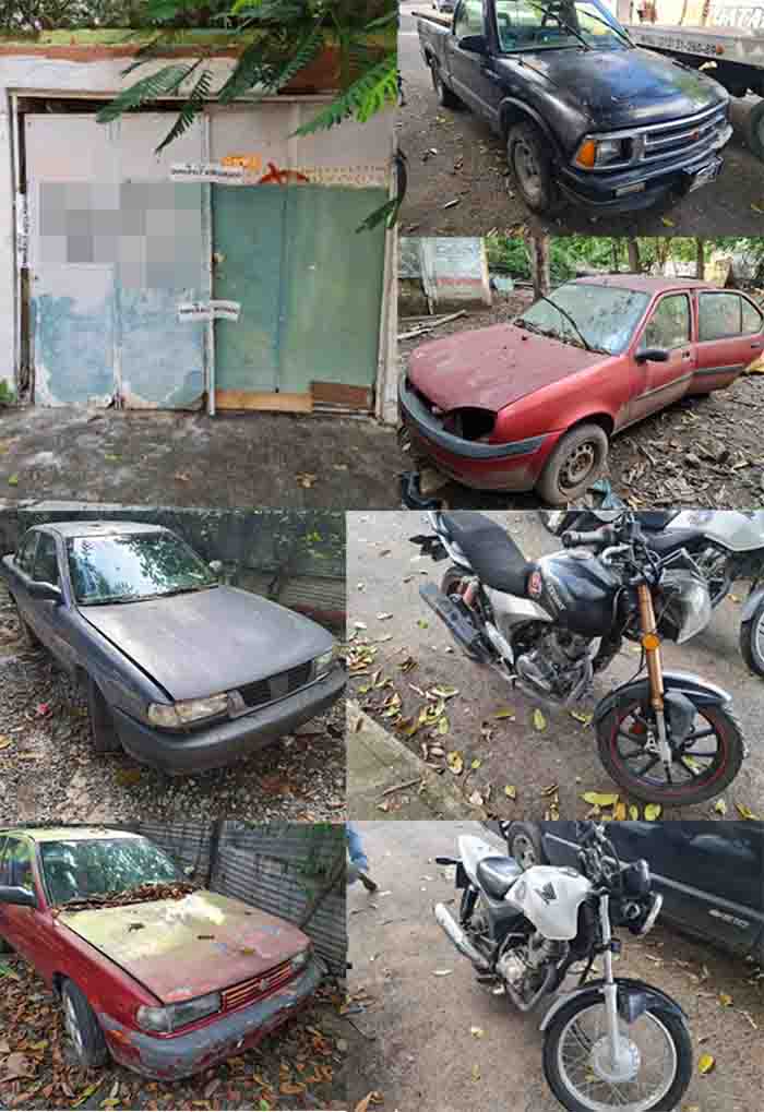 Agentes investigadores intervinieron el lugar ubicado en la colonia Centro de la capital del Estado, donde fueron encontrados y recuperados cuatro automóviles de las marcas Chevrolet, línea S10; Nissan, línea Tsuru; Nissan, línea Sentra y Ford, línea Ikon; así como dos motocicletas: una Honda, línea Cargo y una Keeway, línea 200cc.