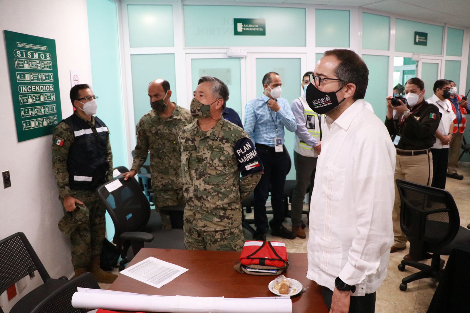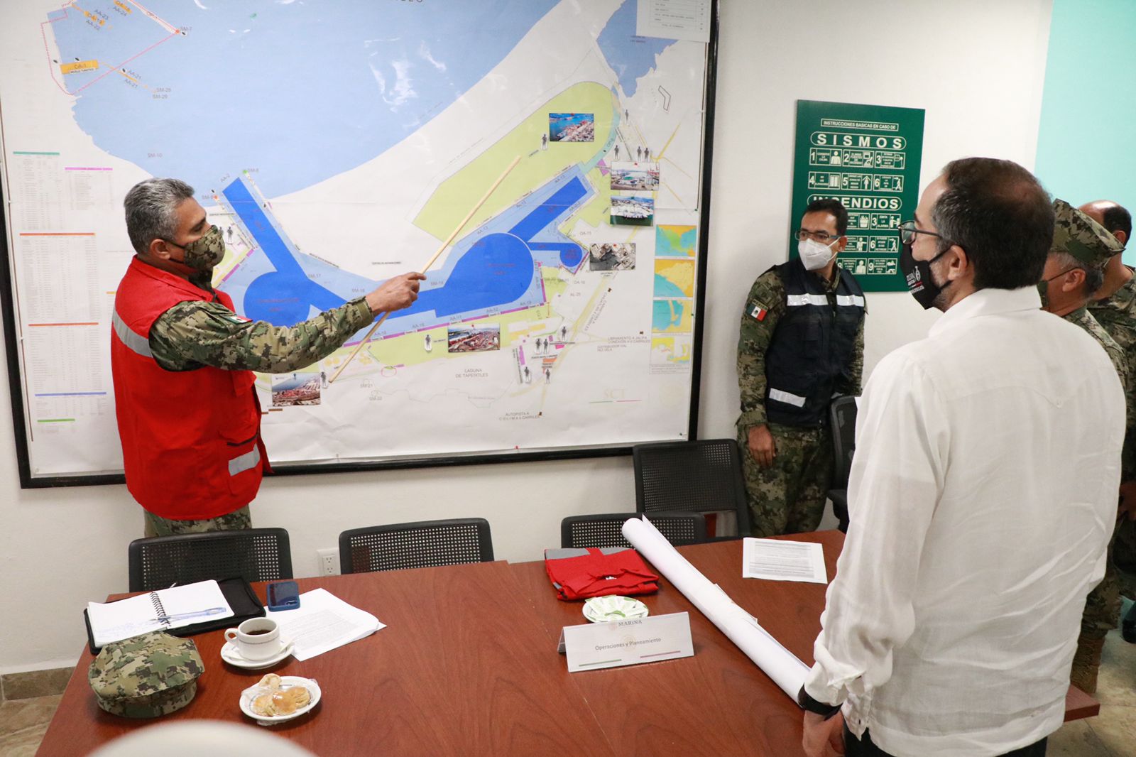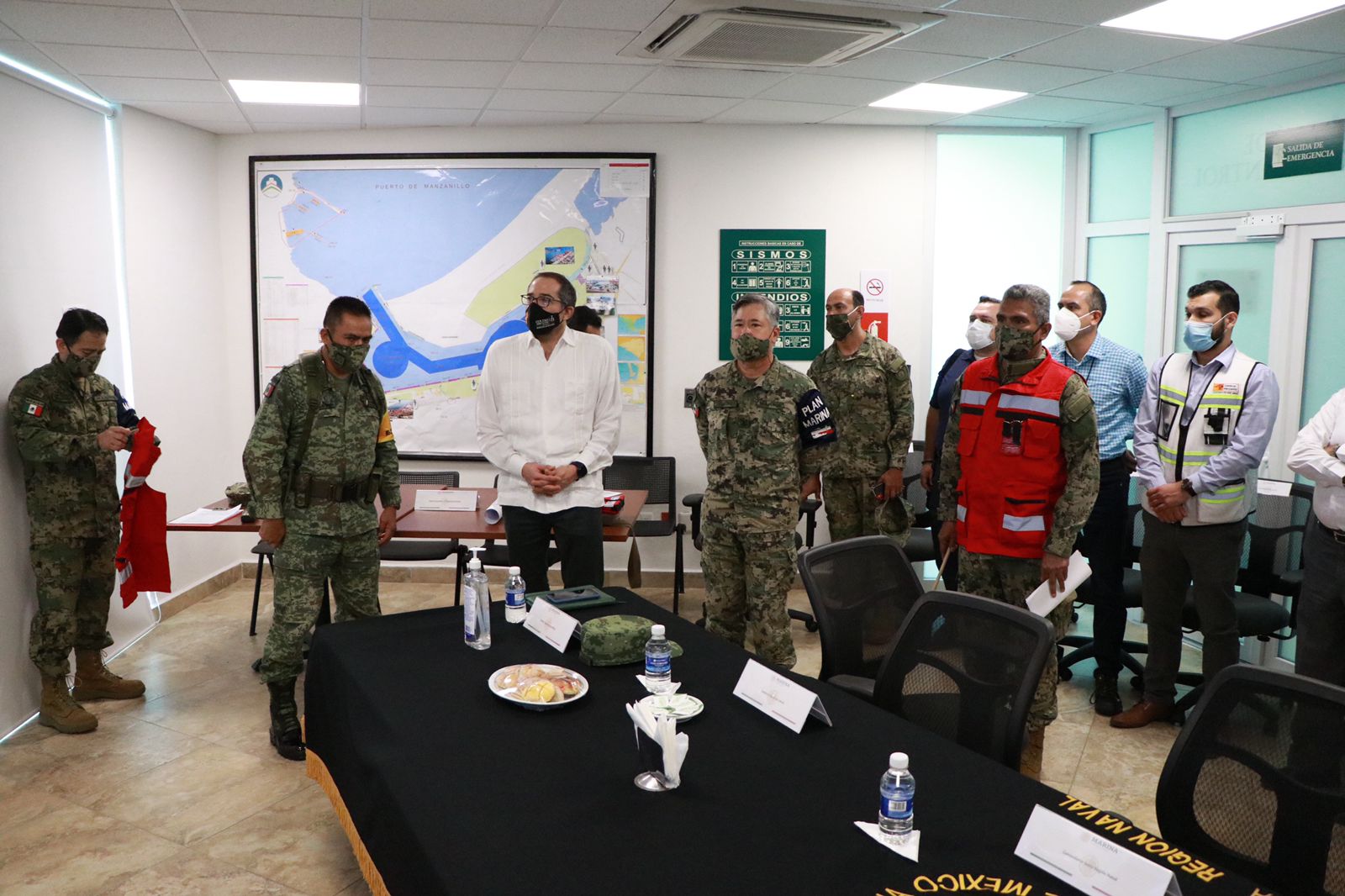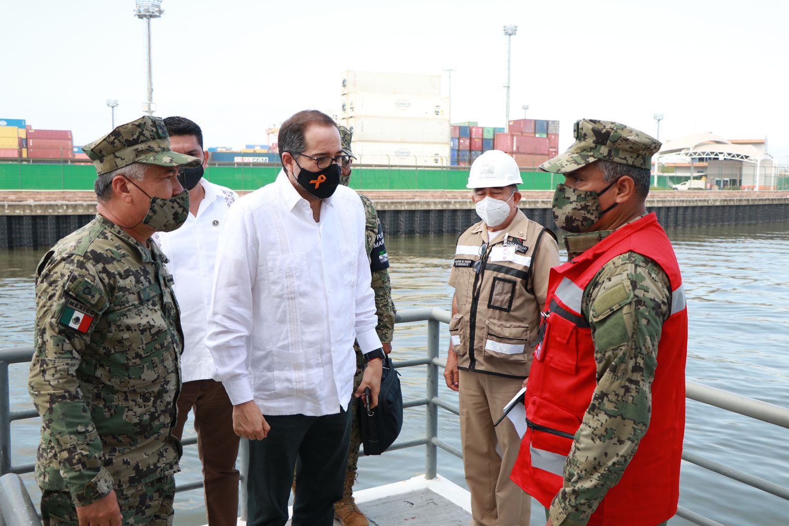 El gobernador José Ignacio Peralta Sánchez, acompañado del Comandante de la VI Región Naval, Rubén Alfonso Vargas Suárez, presenció la práctica nivel III del Código de Protección a Buques e Instalaciones Portuarias, en las instalaciones de Unidad Naval de Protección Portuaria. El mandatario estatal reconoció y destacó la labor de que realiza la Secretaría de Marina en la entidad.