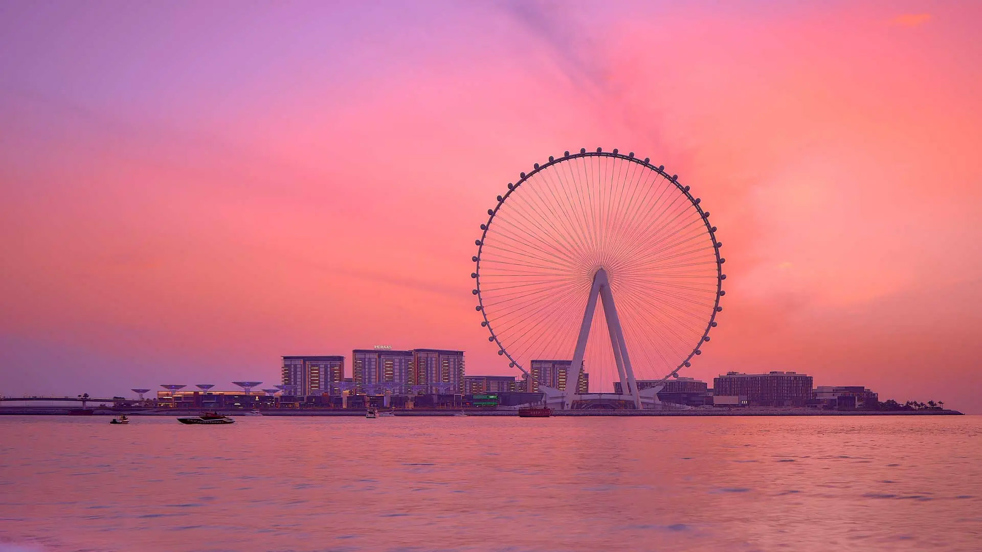 Esta nueva atracción para visitar en Dubái es la pieza central de Bluewaters Island, una isla artificial cerca del puerto deportivo que se inauguró en 2018. Para tomar una idea de su tamaño, duplica las dimensiones del mundialmente conocido London Eye, de Londres.