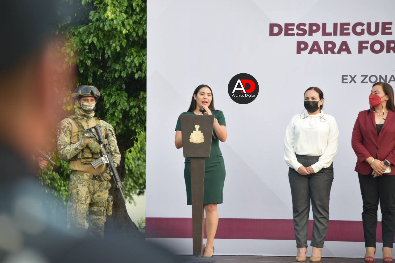 Al poner en marcha el despliegue de las y los agentes de la Marina, desde la explanada de lo que anteriormente fue la XX Zona Militar en la capital, la gobernadora informó que a partir de ahora estos elementos se sumarían al trabajo coordinado, entre el Gobierno del Estado, el Gobierno de México y los municipios, para de manera conjunta llevar esta labor de seguridad a todo el estado.