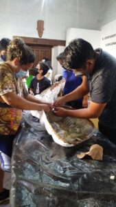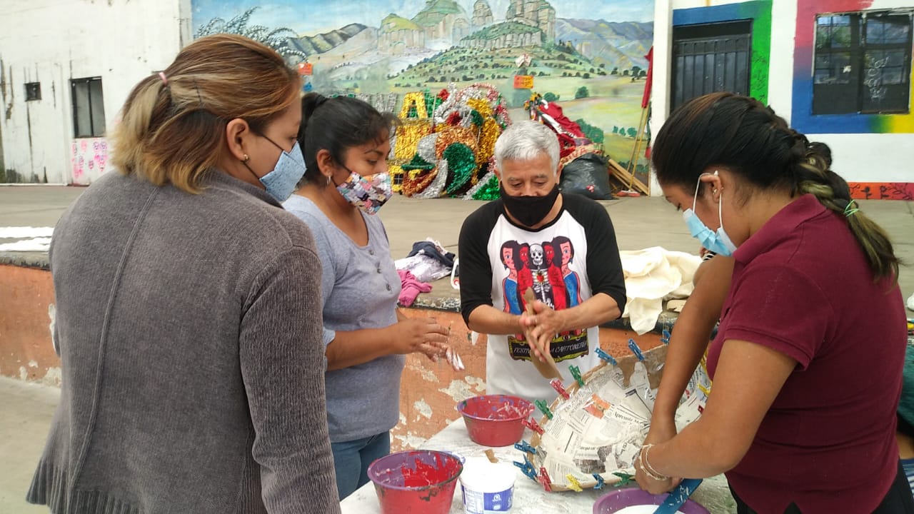 Por su parte, Ernesto López, actor titiritero, cartonero de corazón y artista invitado para colaborar en Tengo un sueño 2021, relata que, en el taller de elaboración de mojigangas, las madres también han participado: “las mamás y los niños están aprendiendo el proceso de la cartonería, desde cómo elaborar engrudo, engomar el papel, empapelar y desmoldar”.