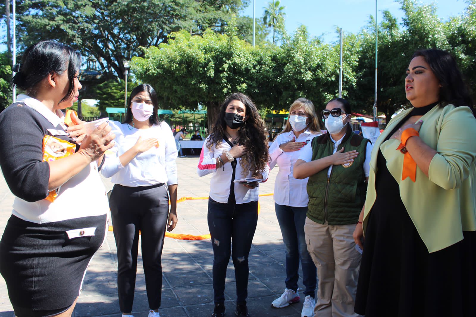 La presidenta del DIF Municipal Cuauhtémoc, Nadia Mejía Martínez, conoció el trabajo de prevención del delito que realiza la Fiscalía del Estado, a través de los módulos instalados en el Jardín de Quesería, con motivo de la Caravana Naranja 25-25 de la No Violencia contra las Mujeres y el inicio de la Campaña Preventiva y de Concientización Vial. La acompañó Betzaida Ochoa Fuentes, directora de Prevención del Delito y Atención a Víctimas de dicha institución estatal, con quien acordó un trabajo coordinado en beneficio de la población.