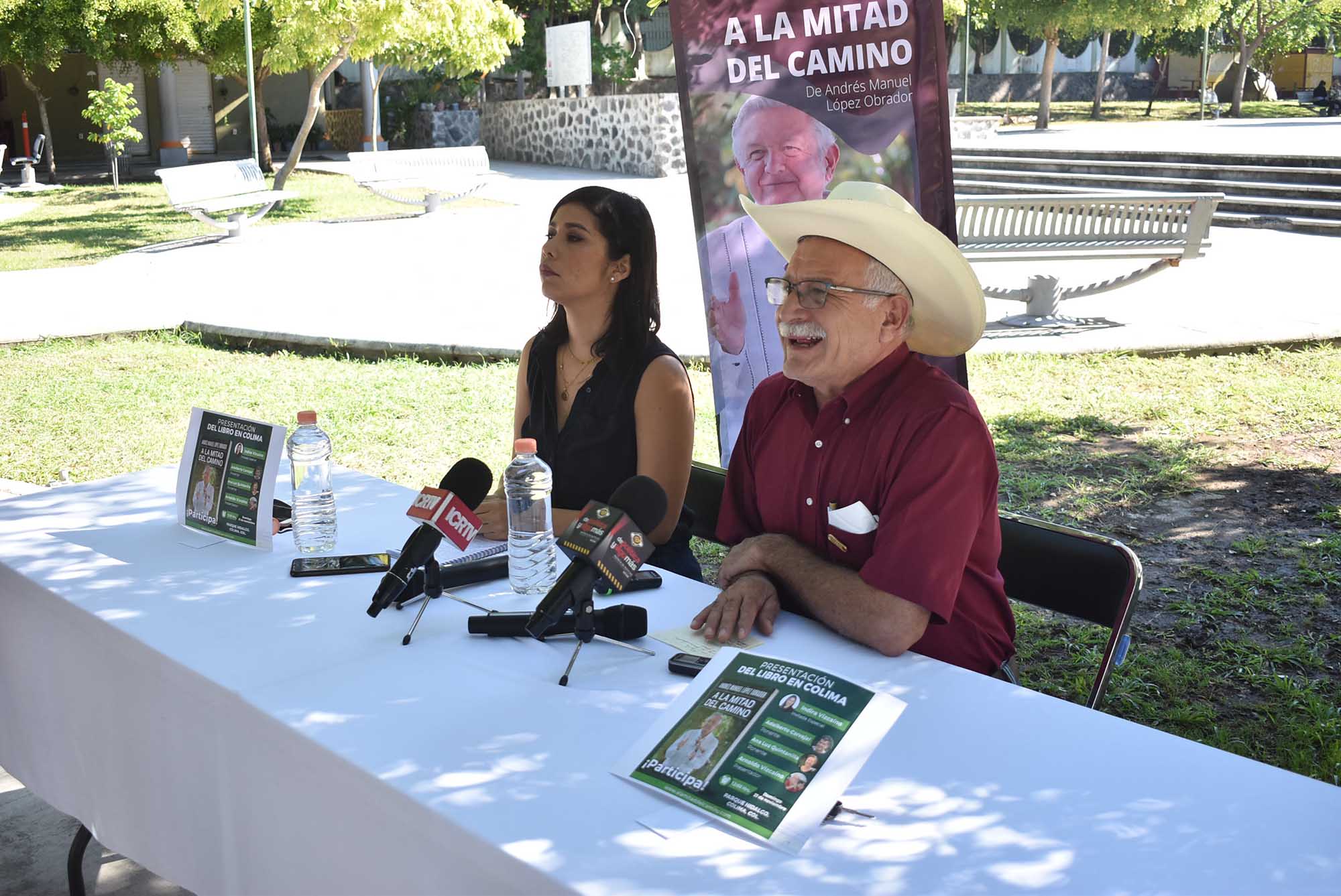 El próximo domingo se efectuará en Colima la presentación oficial del libro “A la mitad del camino”, de Andrés Manuel López Obrador, a las 12:00 del día en la explanada del Parque Hidalgo, así lo anunciaron integrantes del comité organizador para la presentación, Nora Herrera y Arnoldo Vizcaíno Rodríguez, quien además será el presentador del evento.