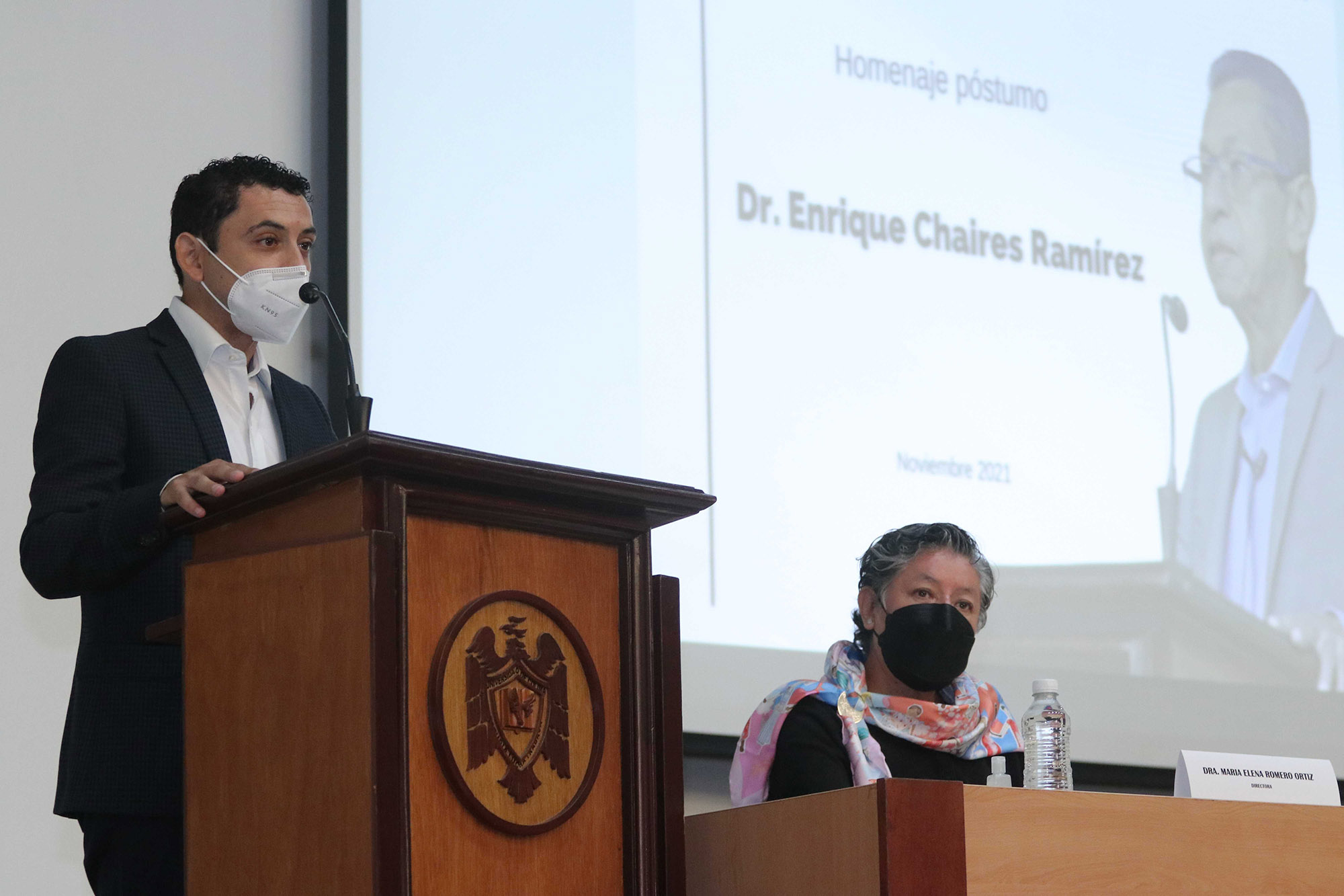 Por último, Enrique José Chaires Ramírez, hijo del homenajeado, dijo que hablar del plantel “evocaba el nombre de Enrique Chaires como formador incansable de profesionistas”. Comentó que desde 1980, su papá adoptó estas paredes como el lugar en que depositó su cariño, esfuerzo, dedicación y tiempo; “se consolidó como universitario distinguido, defensor de la UdeC y de su amada facultad, la cual preservó muchas veces con fundamentos y razones sólidas; otras, únicamente con el corazón de saber que era lo mejor para el presente y futuro de esta casa de estudios, que le permitió crecer y desarrollarse”.