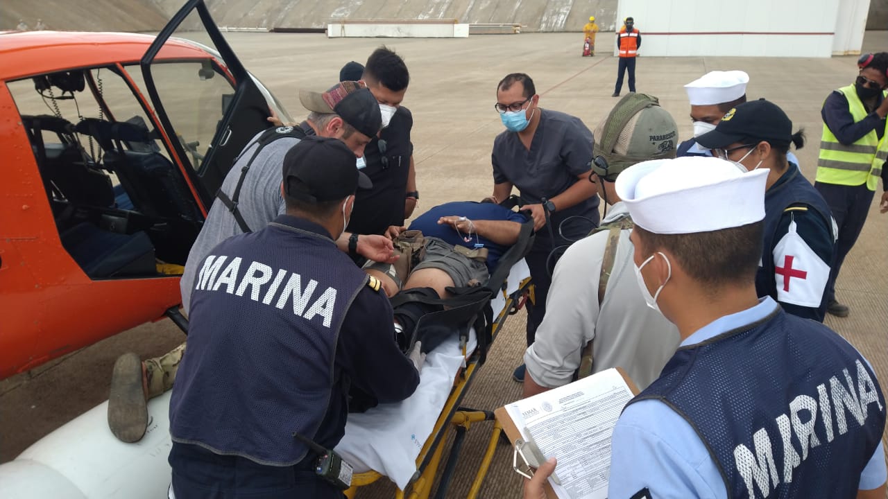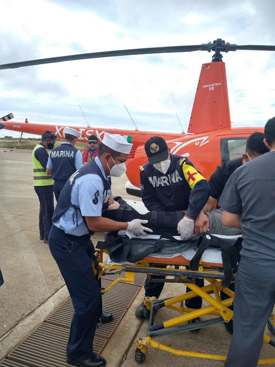 Al llegar al lugar en el que se requería el apoyo, personal naval efectuó la evacuación médica vía área de tres personas de sexo masculino y posteriormente fueron trasladados a las instalaciones del Sector Naval de Isla Socorro, donde previamente se había coordinado una ambulancia aérea que ya los esperaba para ser trasladados a un hospital de la ciudad de Mazatlán, Sinaloa, para recibir atención médica especializada.