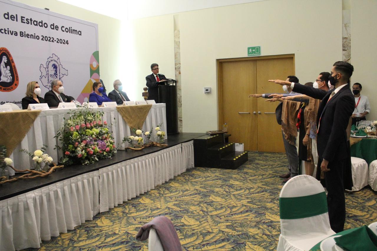 La secretaria de Salud, Martha Janeth Espinosa Mejía presidió la toma de protesta de la nueva mesa directiva del Colegio de Pediatras del Estado, el cual será dirigido por Dulce Belén Cabrera Sandoval. En el acto donde estuvo el presidente de la Confederación Nacional de Pediatría de México, Jesús Gerardo Guajardo, destacó el alto nivel de capacitación médica continua, la apertura del gobierno estatal a nuevos proyectos del gremio y agradecimiento al presidente saliente Germán Agustín Rico Solís.