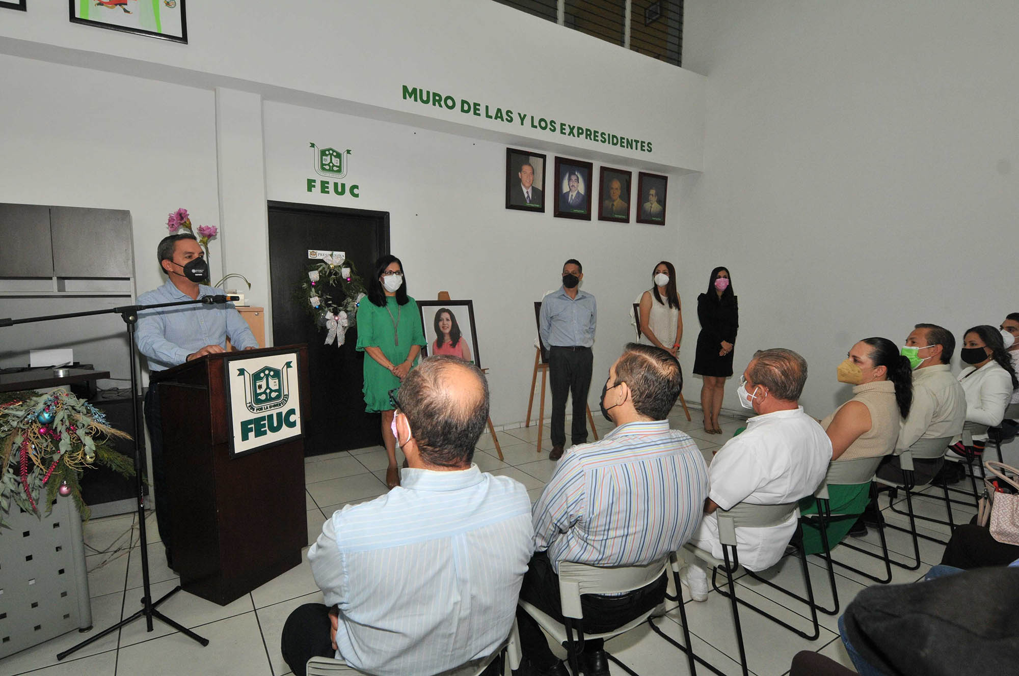 Este viernes, el rector de la Universidad de Colima, Christian Torres Ortiz Zermeño develó las fotografías de las tres últimas presidentas de la Federeación de Egresados de la Universidad de Colima (FEUC), que formarán parte a partir de hoy del “Muro de las y los expresidentes” de dicho sector universitario.