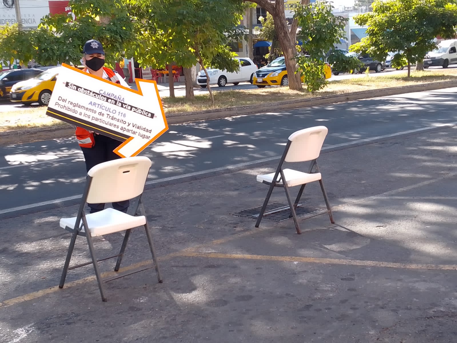 Indicaron que las campañas son únicamente preventivas, pues no se aplica ninguna multa, se dialoga con las personas que tienen colocados los objetos apartando estacionamiento y se les invita a sujetarse a lo que establece el Reglamento de Tránsito y Vialidad del Municipio de Villa de Álvarez.