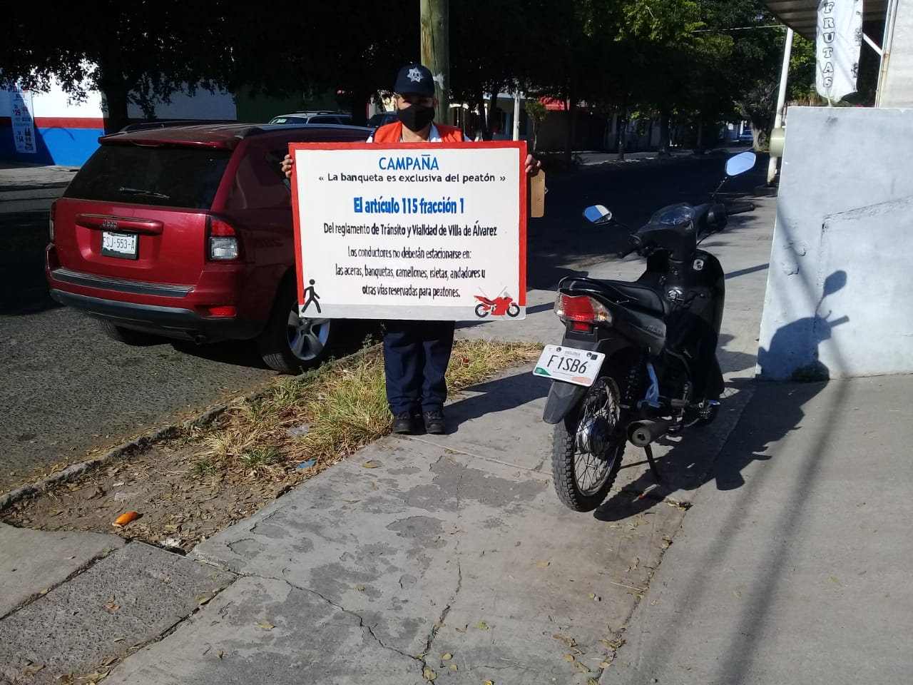 Villa de Álvarez. Col.- Para concientizar a la ciudadanía sobre el respeto a los peatones y a la vía pública, como lo establece el Reglamento de Tránsito y Vialidad del Municipio de Villa de Álvarez, el Ayuntamiento implementó las campañas “Sin obstáculos en la vía pública” y “La banqueta es exclusiva del peatón”.
