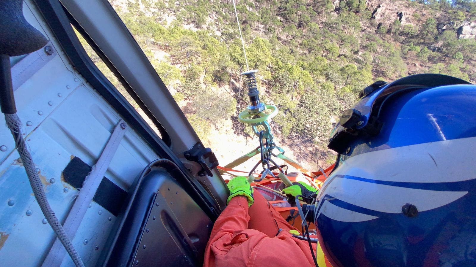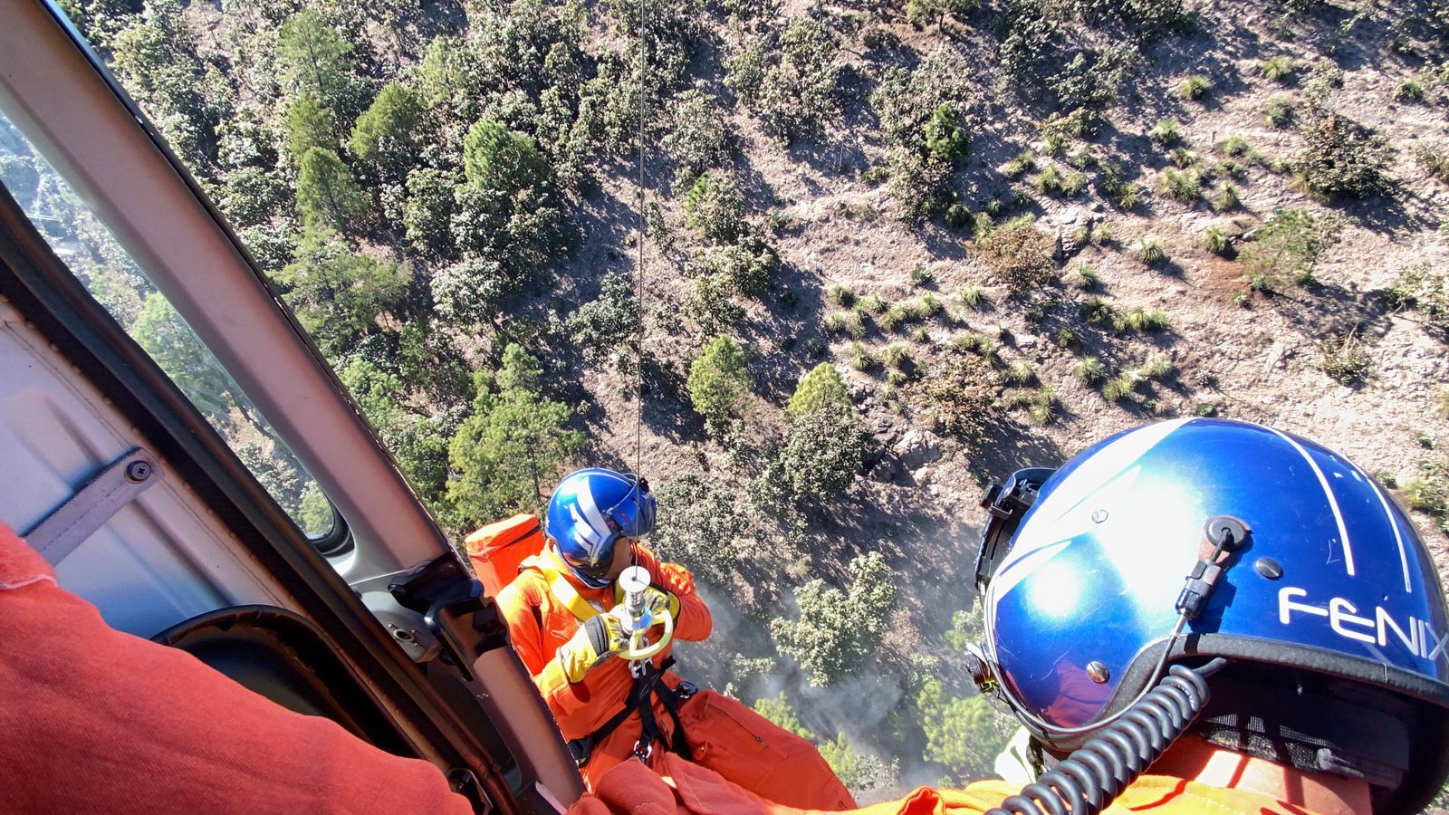 Siendo las 17:47 horas, se dan por terminados los trabajos de rescate, en coordinación con dos aeronaves de la Secretaria de Seguridad Pública del Estado, viajando en una de ellas dos médicos de SAMU y en la otra el personal de rescate del grupo aéreo “Fénix” quien descendieron para realizar maniobras para poder sacar a las personas.