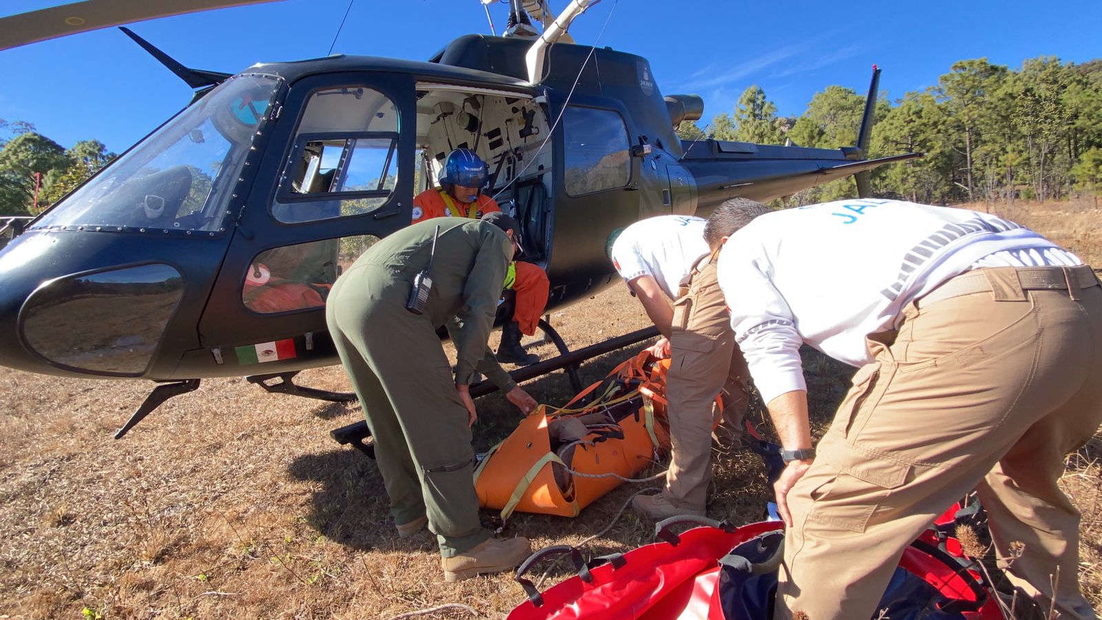 📍2 masculinos de 25 y 35 años de edad, mismos que serán trasladados vía aérea a Guadalajara para su mejor atención.